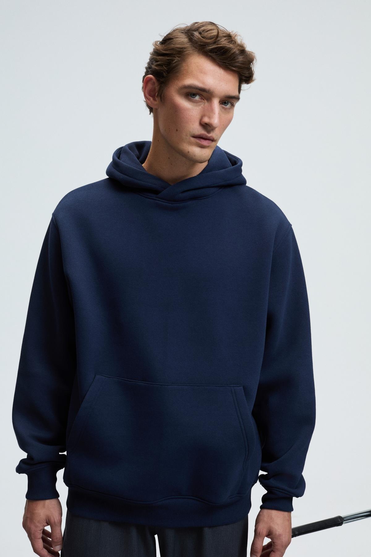 AMOS Erkek Yumuşak Kumaşlı 3 İplik Oversize Kapüşonlu Kanguru Cepli Lacivert Sweatshirt