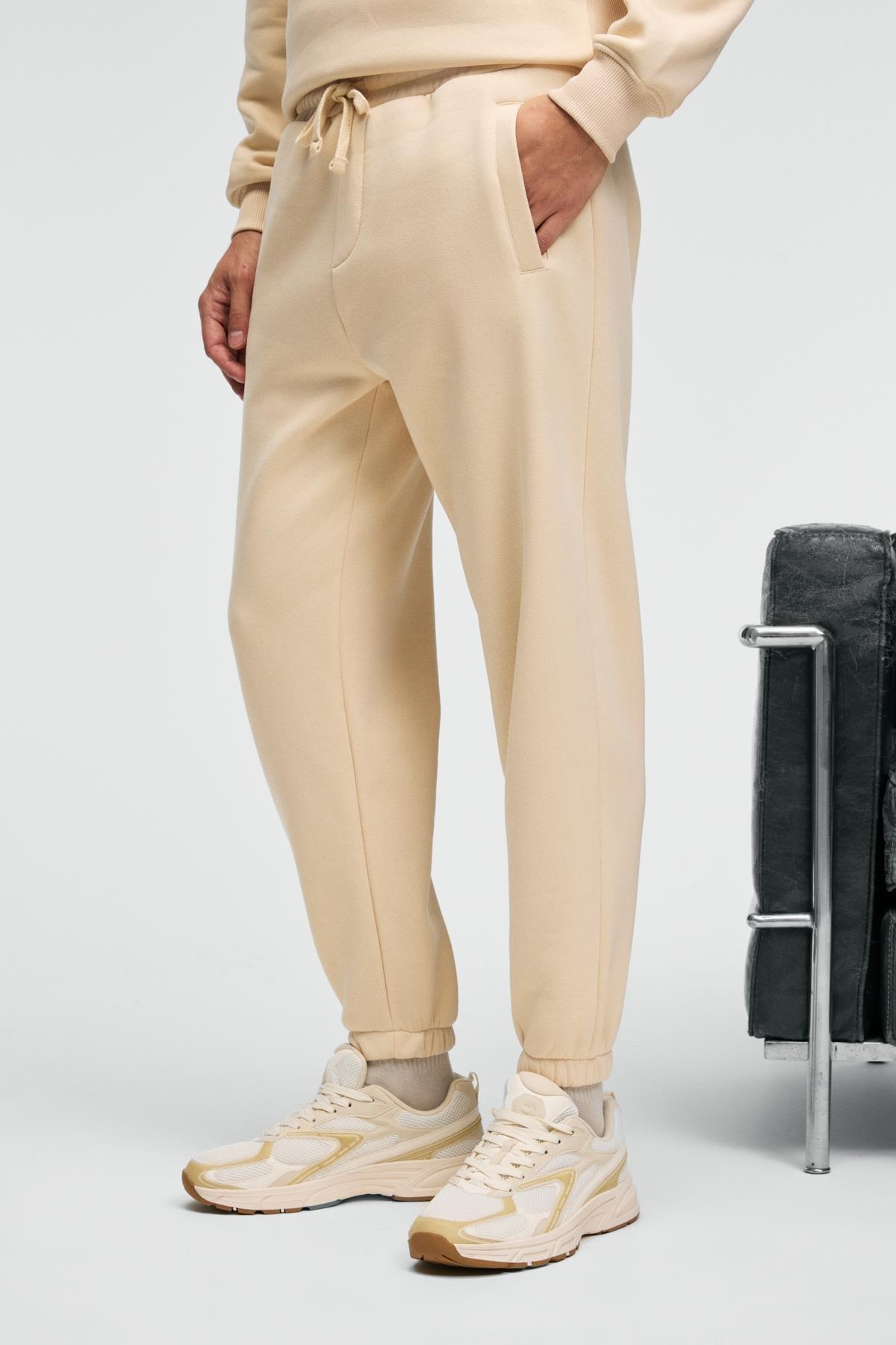 ANSEL Erkek Lastikli Dar Paça Üç Cepli Yumuşacık Organik Pamuklu Vanilya Eşofman Altı