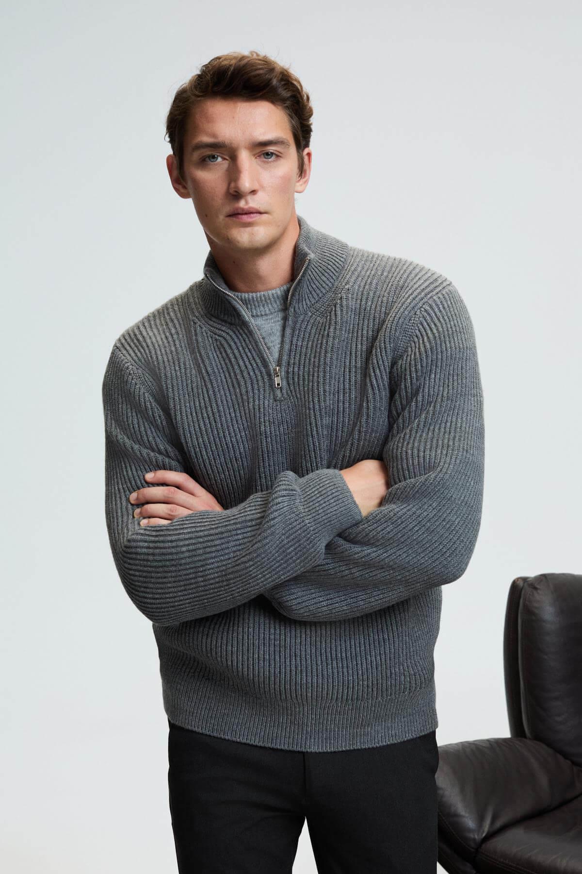BERNARDO Erkek Yarım Fermuarlı Dik Yaka Triko Antrasit Kazak