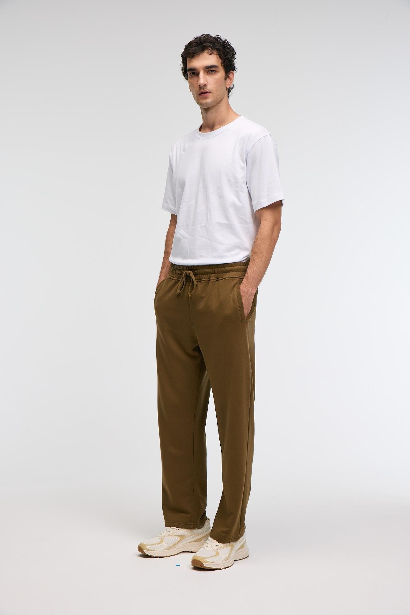 CLARENCE Erkek %100 Pamuk Kordonlu Lastikli Bel Arka Cebi Süs Etiketli Haki Eşofman Altı