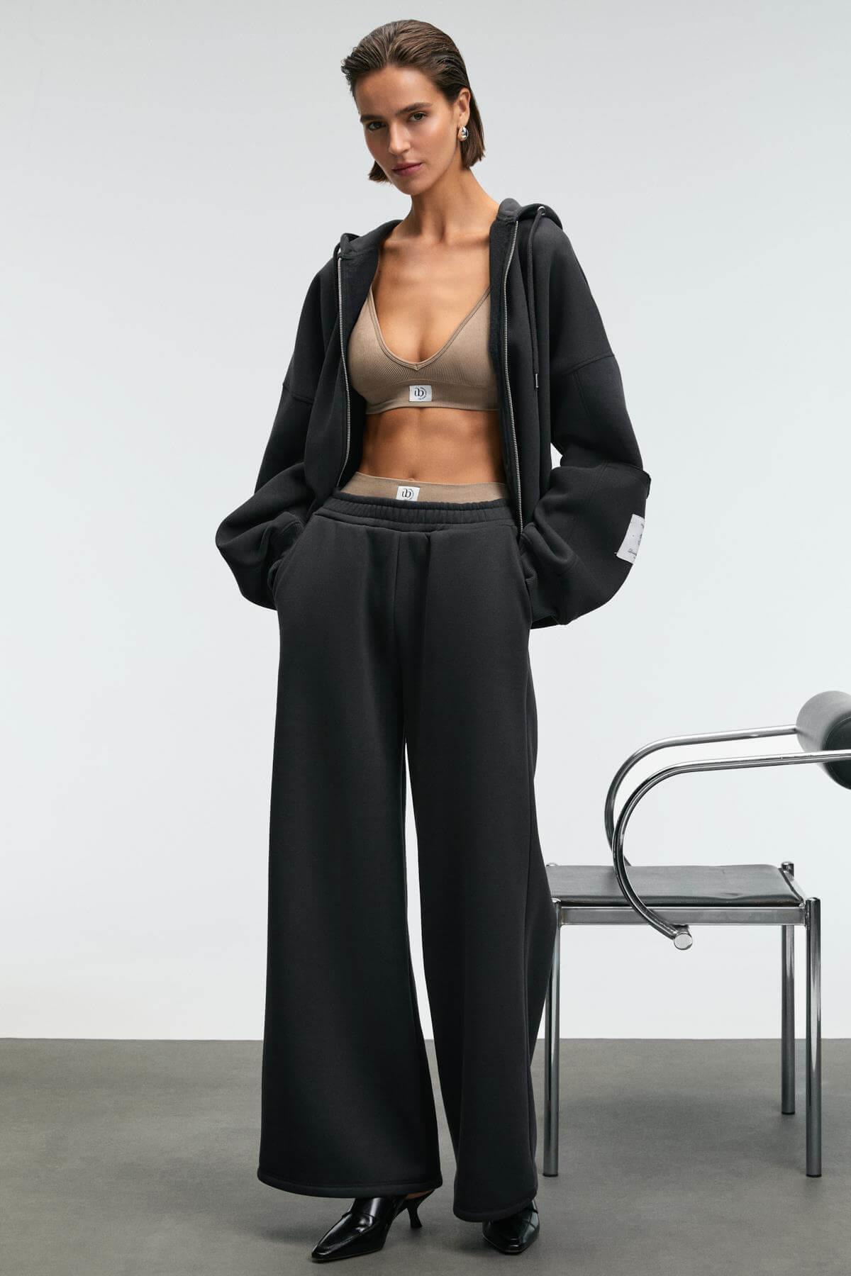 ENAVIE Kadın Oversize Beli Lastikli Çift Cepli Antrasit Eşofman Altı