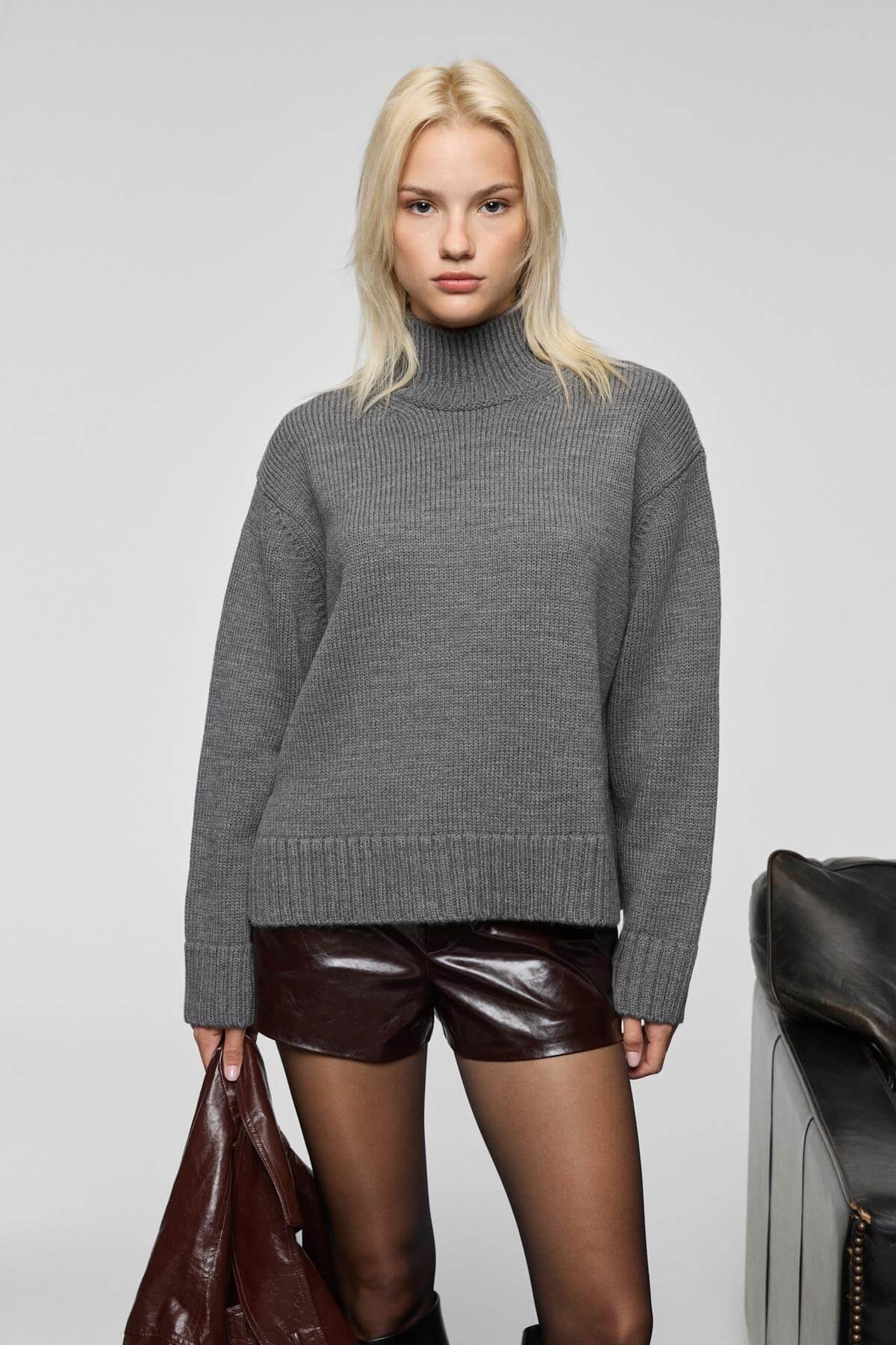 JOYITA Kadın Balıkçı Yaka Oversize Triko Antrasit Kazak