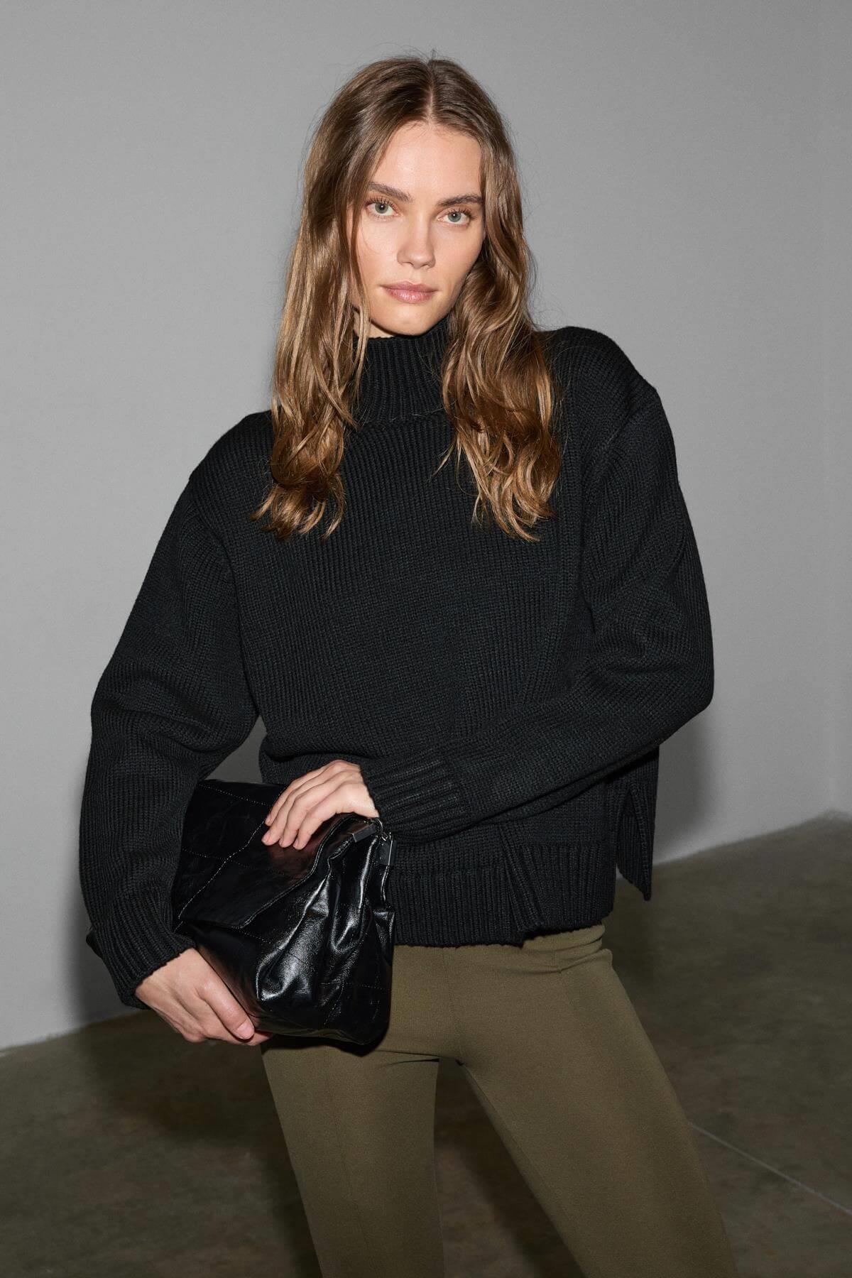 JOYITA Kadın Balıkçı Yaka Oversize Triko Siyah Kazak