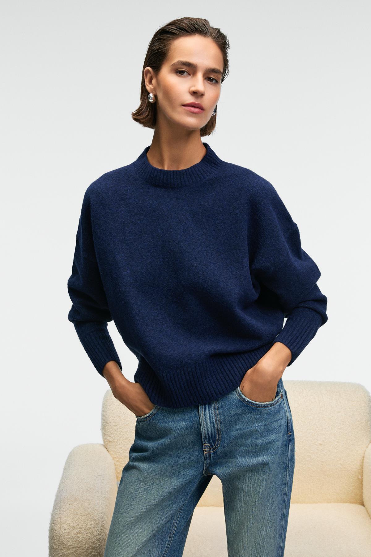 NANNA Kadın Oversize Fit Yumuşacık Kaşmir Tuşesinde Bisiklet yaka Kalın Triko Lacivert Kazak