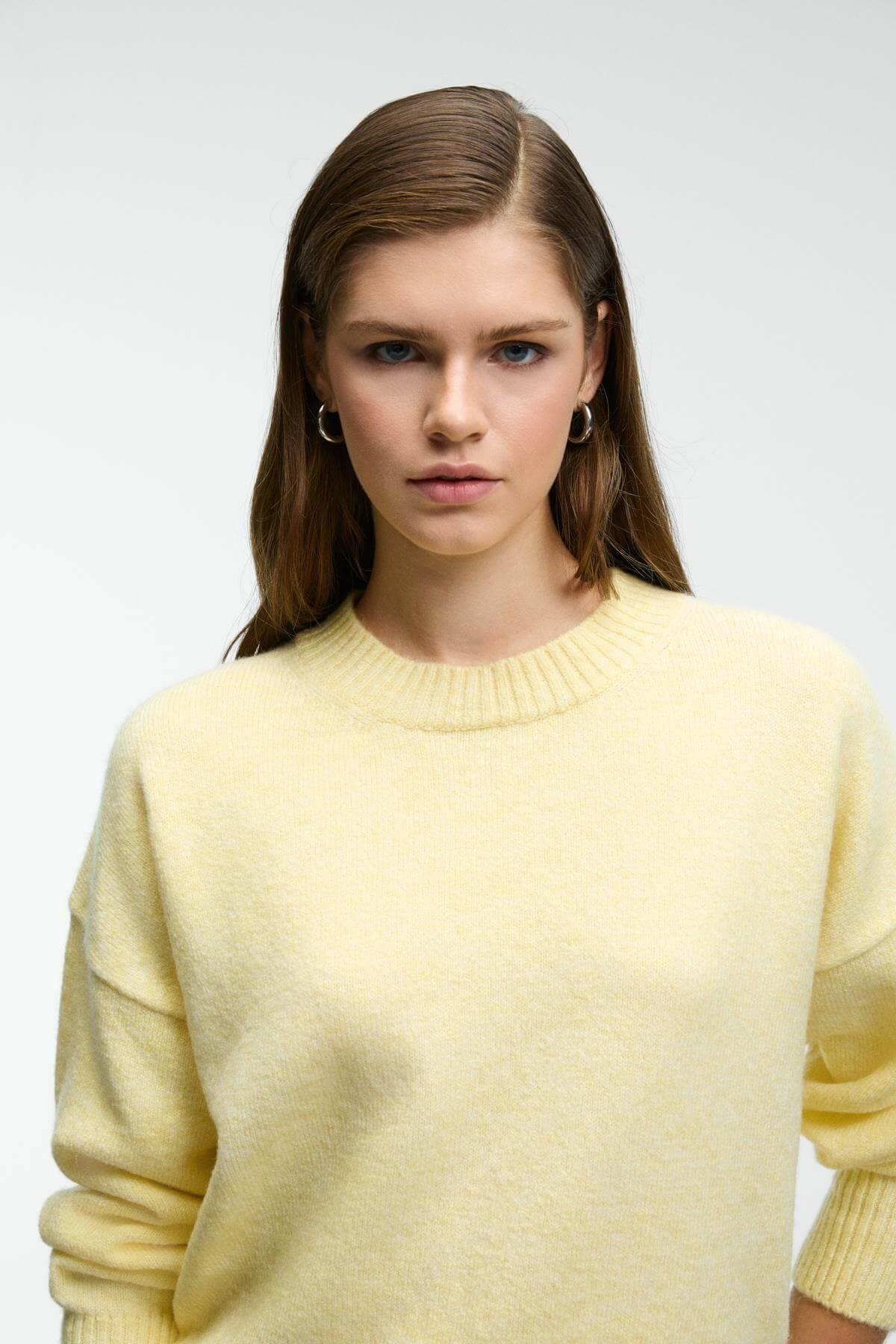 NANNA Kadın Oversize Fit Yumuşacık Kaşmir Tuşesinde Bisiklet yaka Kalın Triko Sarı Kazak