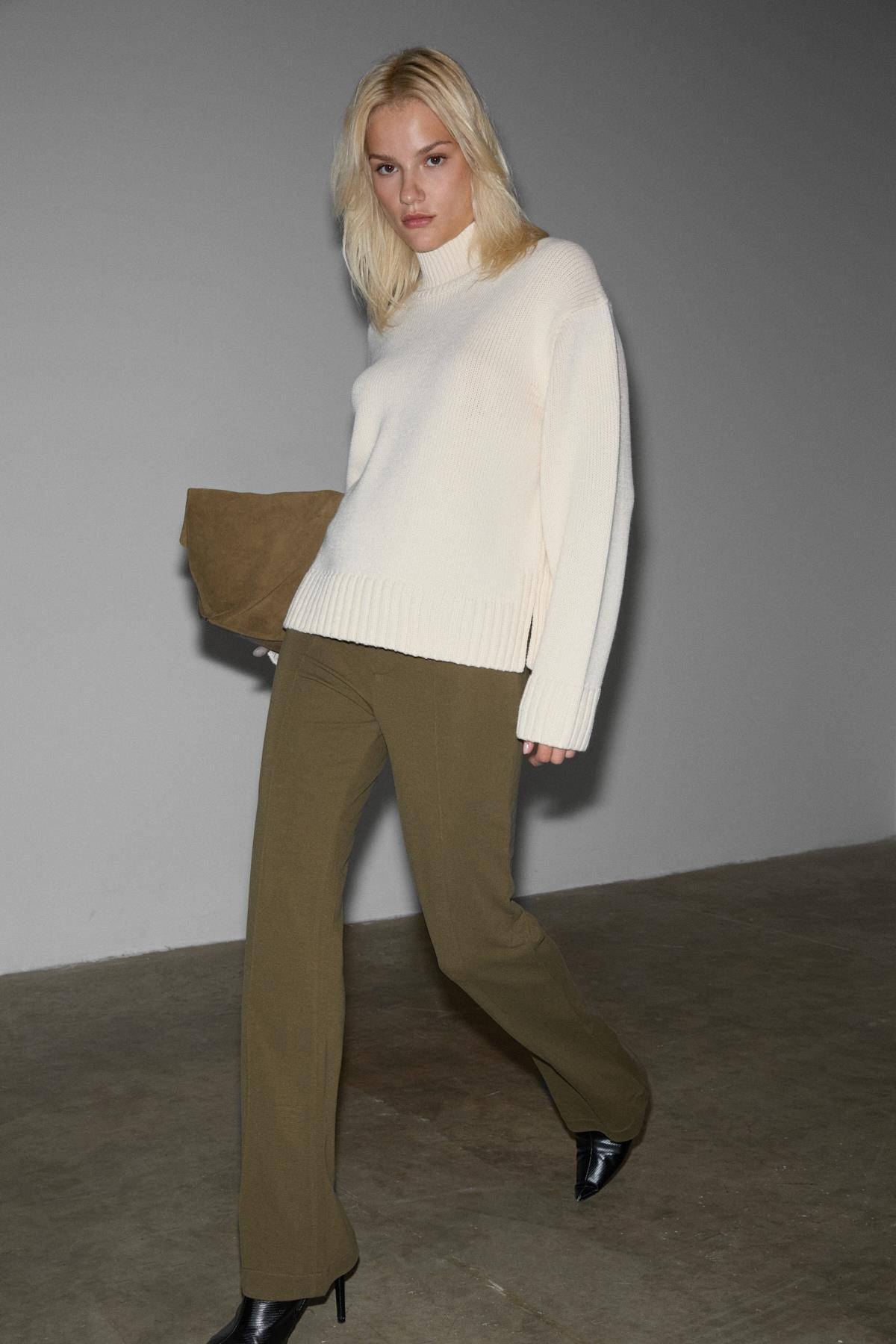 NIRISELLE Kadın Esnek Kumaşlı Vücuda Oturan Beli Lastikli Regular Haki Pantolon