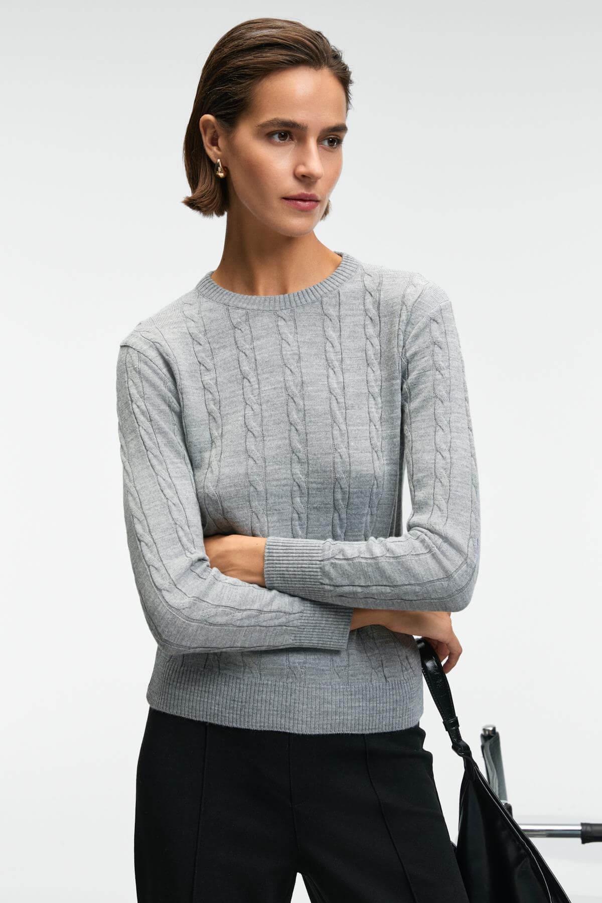 QUERIDA Kadın Yuvarlak Yaka Saç Örgülü Regular Fit Triko Grimelanj Kazak