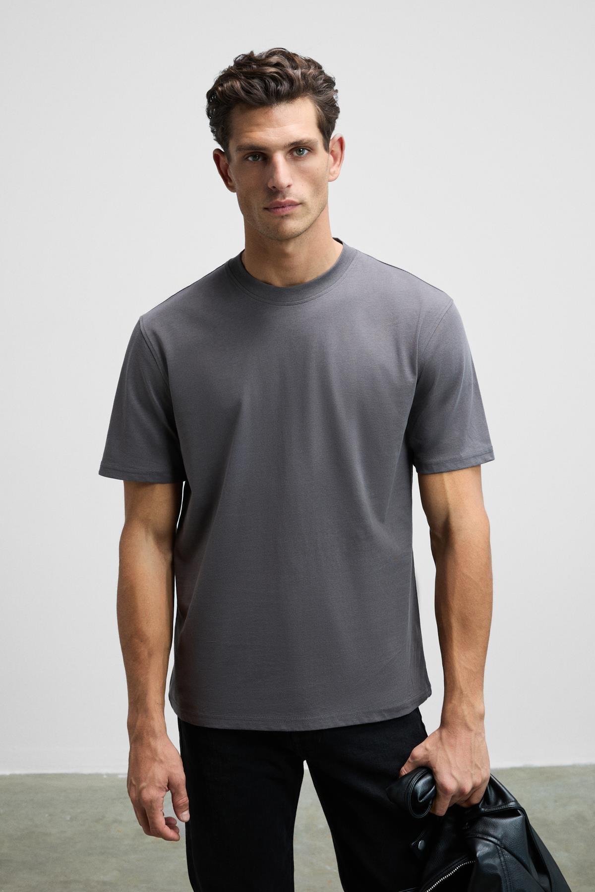 Solo Erkek %100 Organik Pamuklu Kalın Dokulu Comfort Fit Bisiklet Yakalı Antrasit T-Shirt