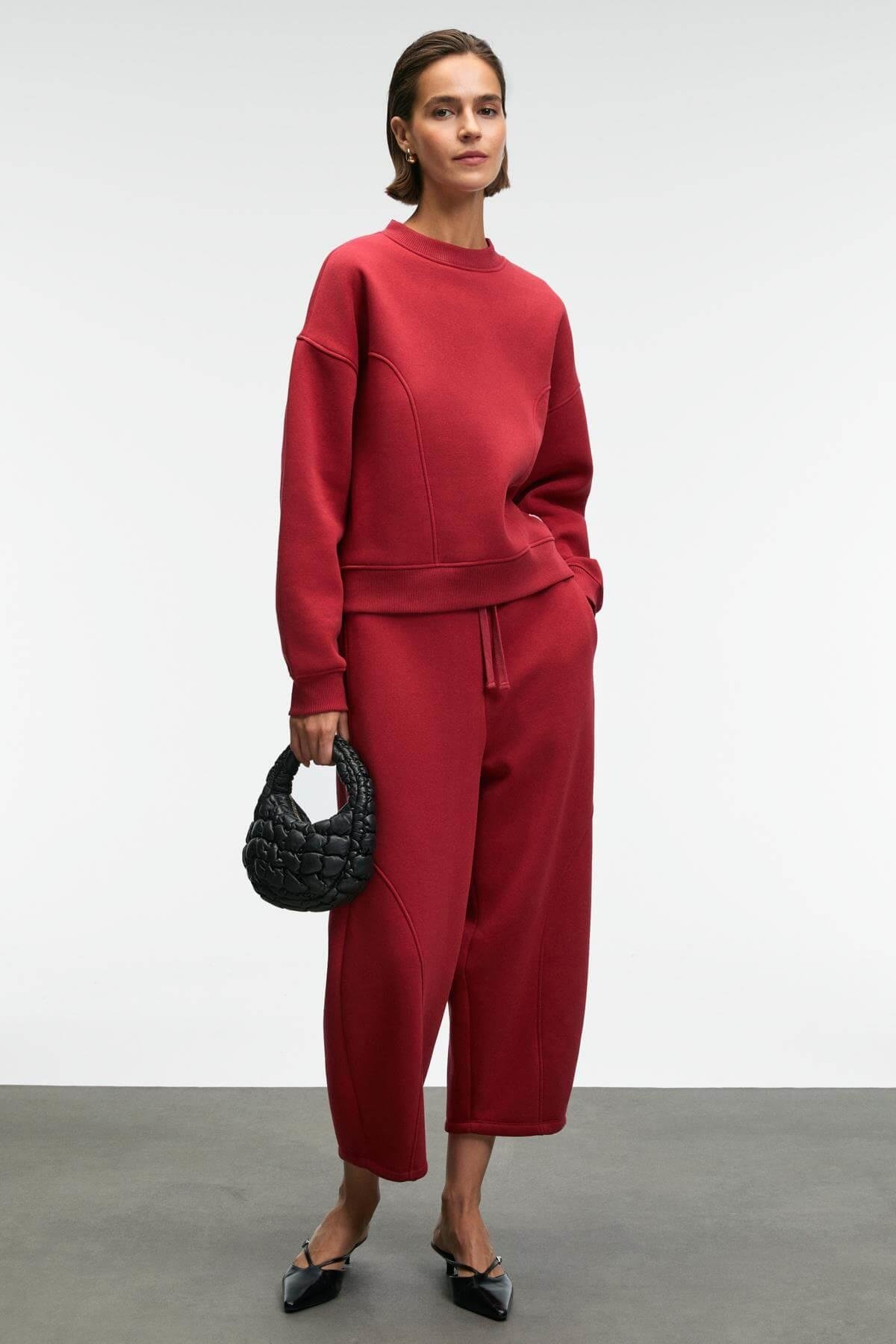 YUVESSA Kadın Oversize Kordonlu Çift Cepli Balon Kırmızı Eşofman Altı